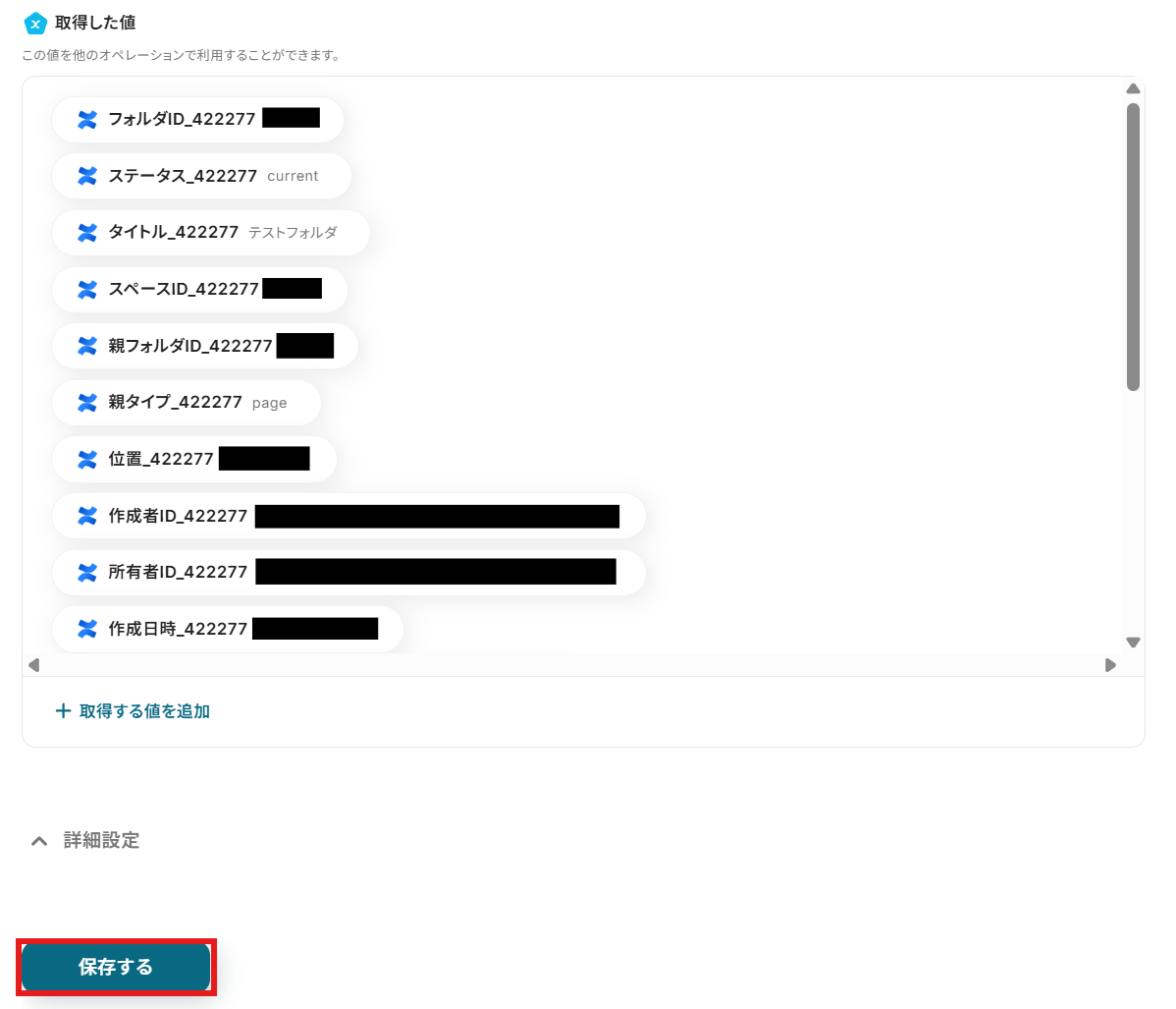 取得した値に先ほど追加した値が設定されていることを確認し、保存するボタンをクリックしましょう。