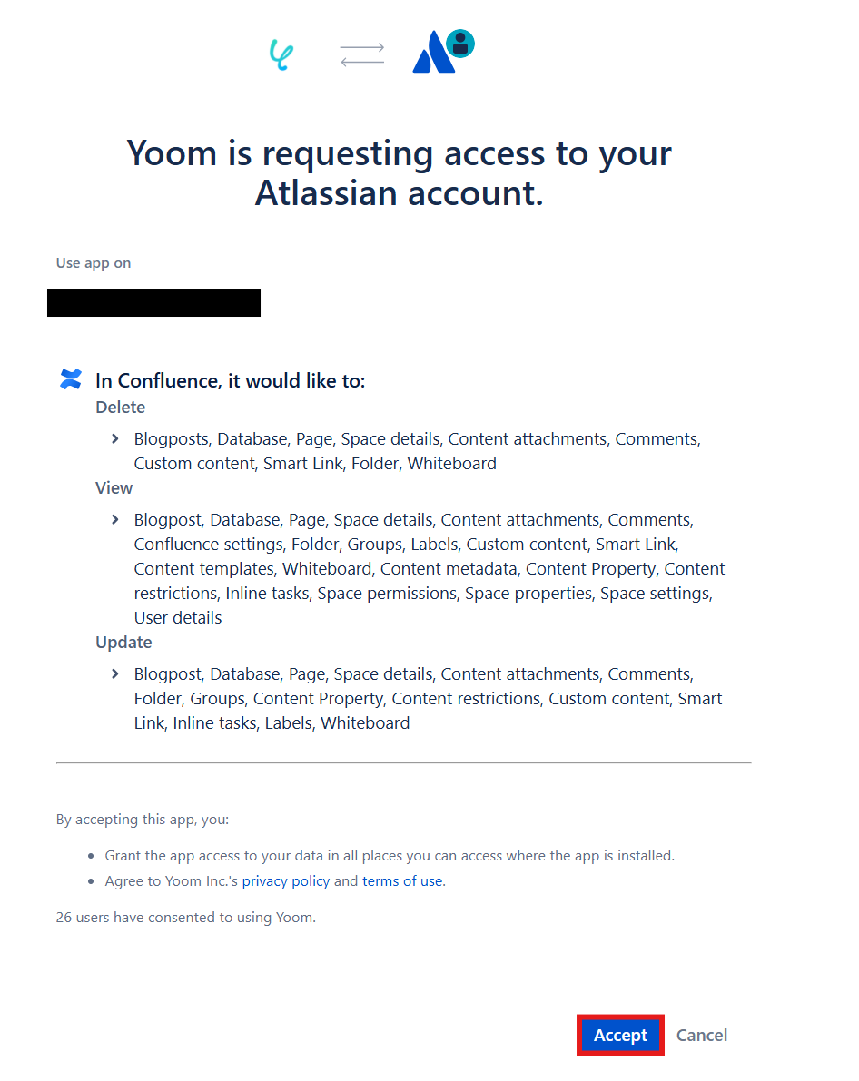Yoomとの連携許可を求められるためAcceptボタンをクリックしましょう。