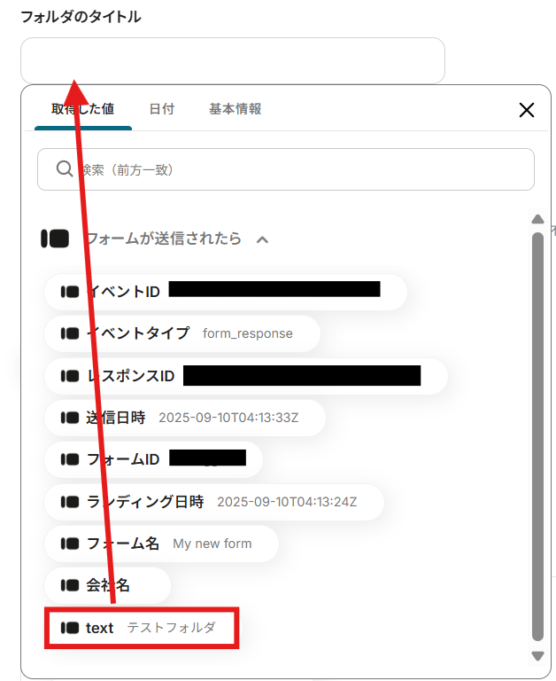 分岐のオペレーションを使用いただくことで、回答内容ごとにフォルダの作成先を変更することができます。