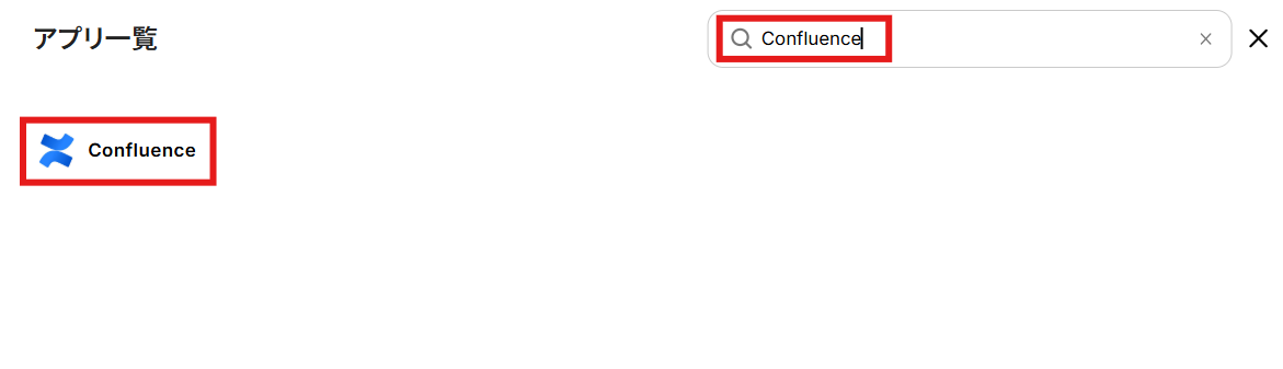 検索ボックスにConfluenceと入力し、Confluenceのアイコンをクリックします。