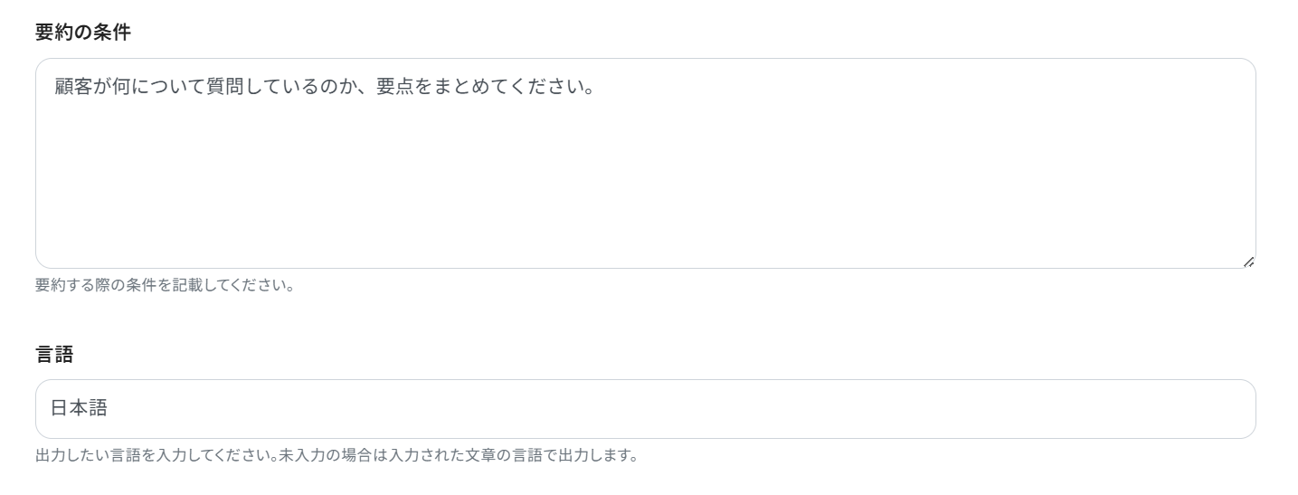 続いて、先ほど取得したTypeformのお問い合わせ内容を、要約する設定をします。