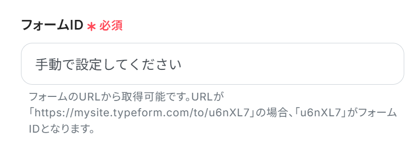 たとえば「https://mysite.typeform.com/to/○○」なら、「○○」がフォームIDです。