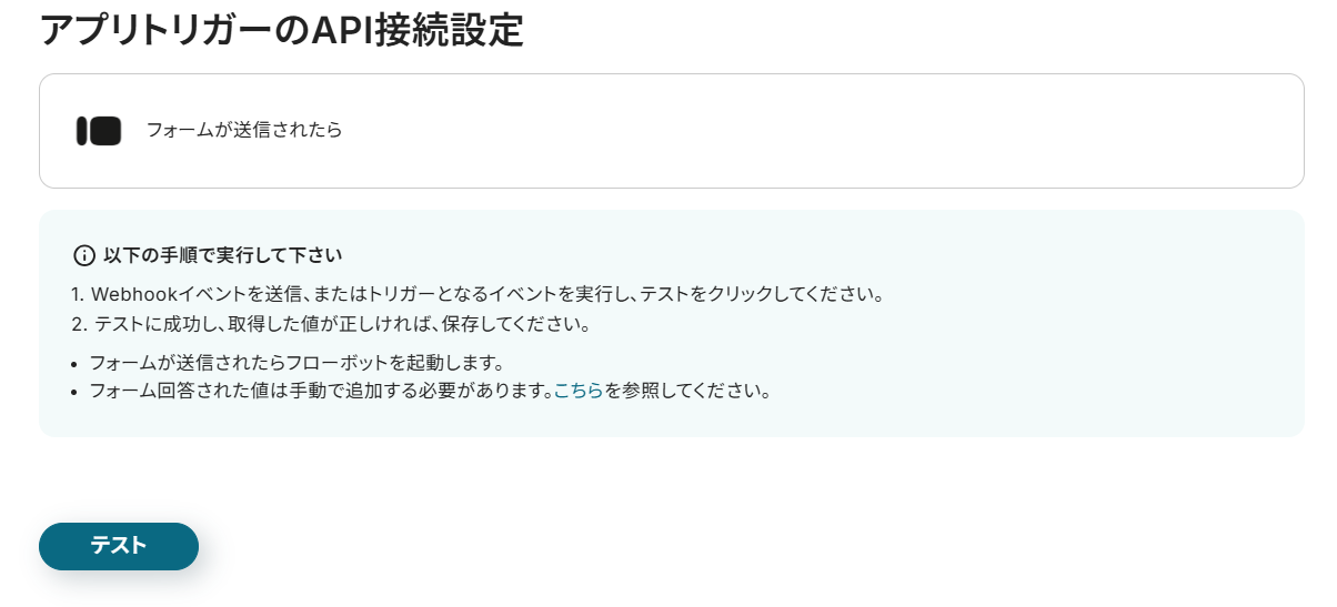 設定が終わったら、テストをクリックしましょう。