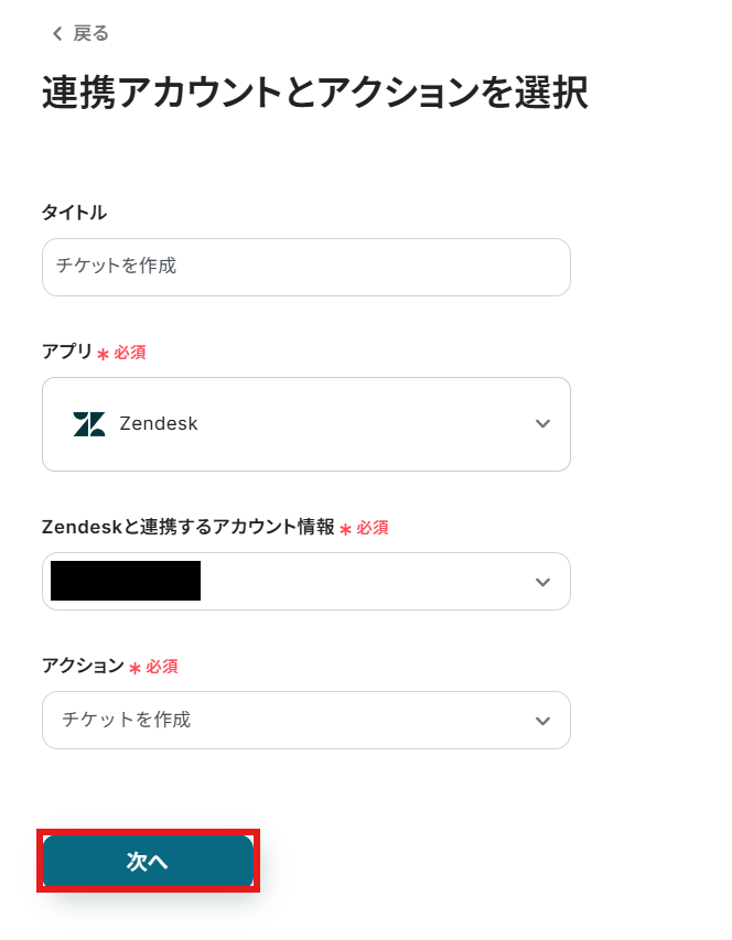 次にZendeskへチケットを作成する設定を行います。