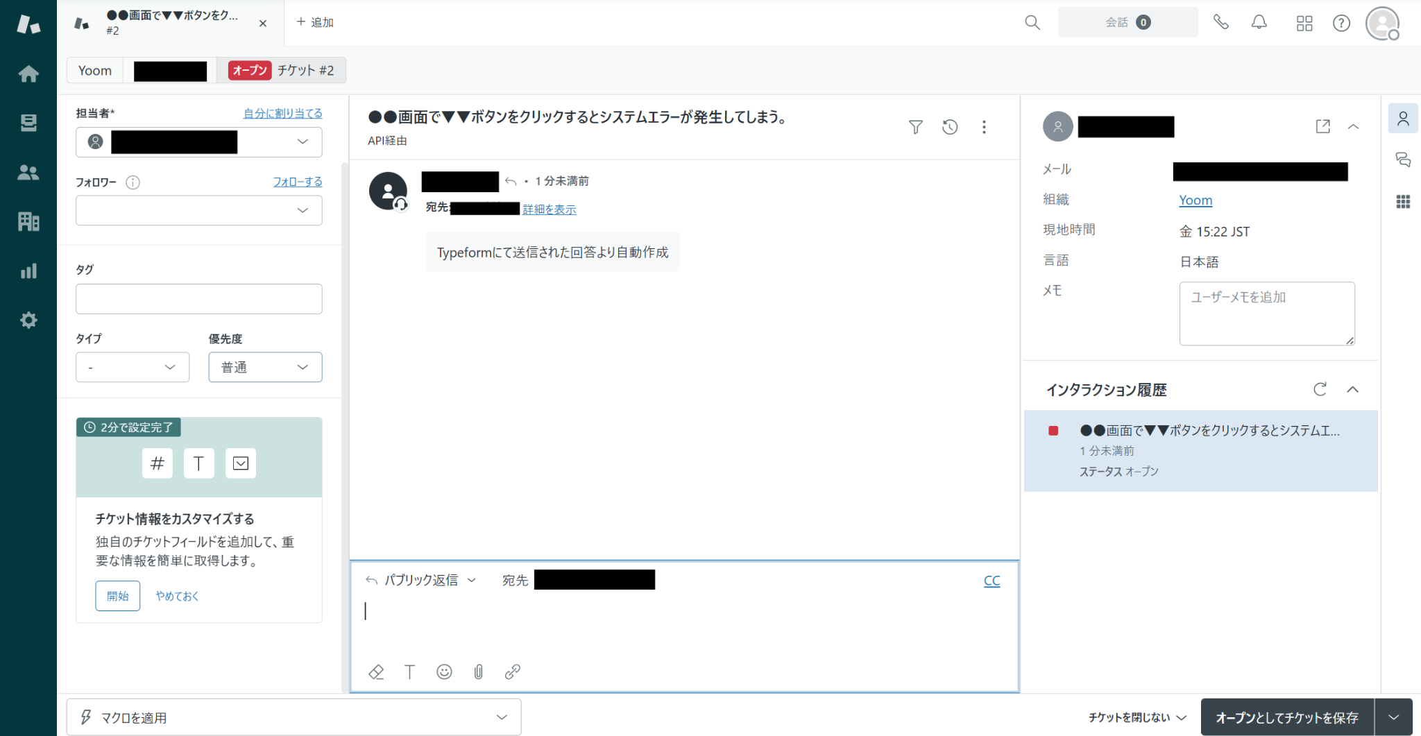 Zendeskも参照し、チケットが作成されていることを確認してください。