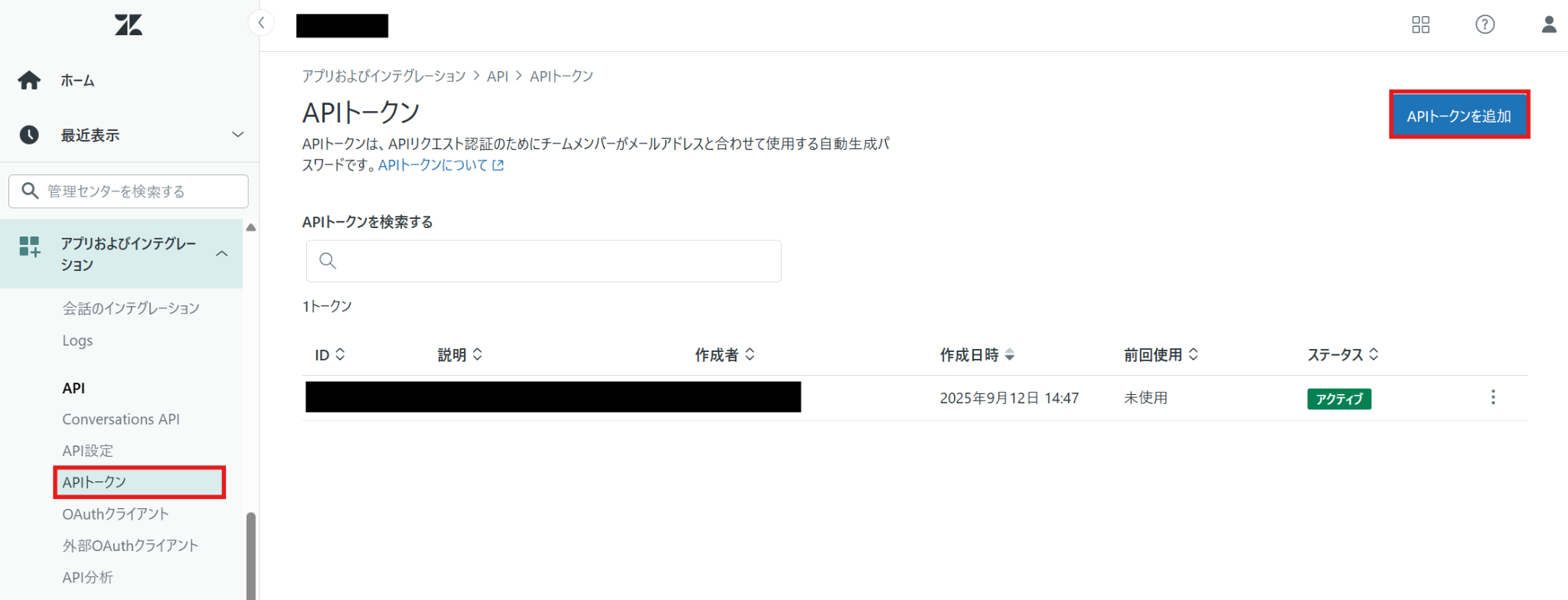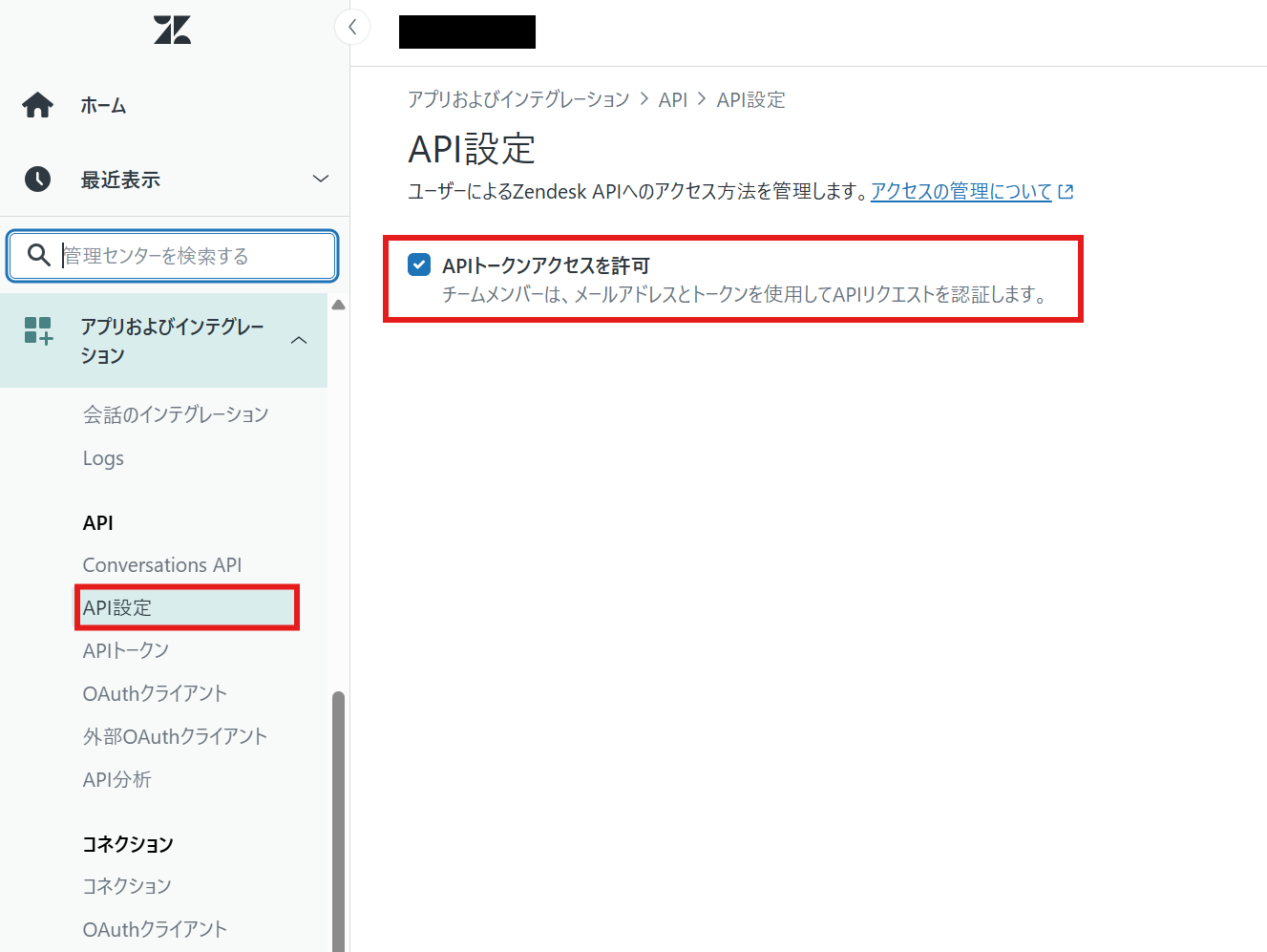 ※ZendeskでのAPIトークンの取得について、下記のキャプチャも参考にしてください。