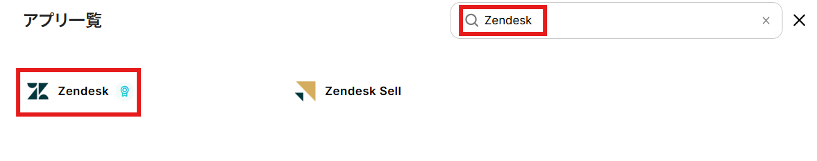 検索ボックスにZendeskと入力し、Zendeskのアイコンをクリックします。