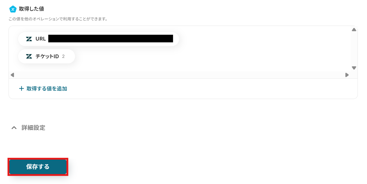 テスト結果に問題がなければ画面下の保存するボタンをクリックし、Zendeskへのチケット作成設定を完了させてください。