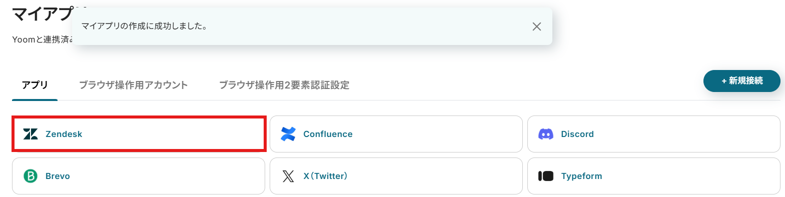 マイアプリにZendeskが追加されたことを確認できたら、Zendeskのマイアプリ登録は完了となります。