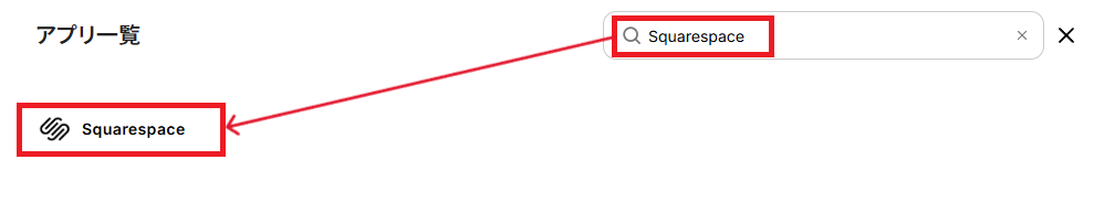 先ほどと同様に、検索窓からSquarespaceと検索しクリックします。