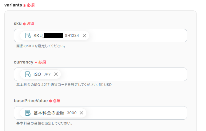 今回の例では、SKU・ISO・価格を抽出します。
