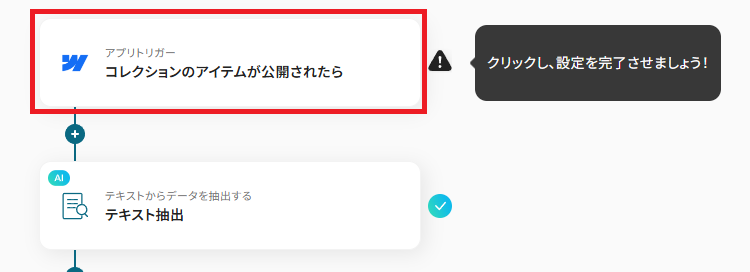 - Webflowのトリガー設定およびテキスト抽出とSquarespaceのアクション設定