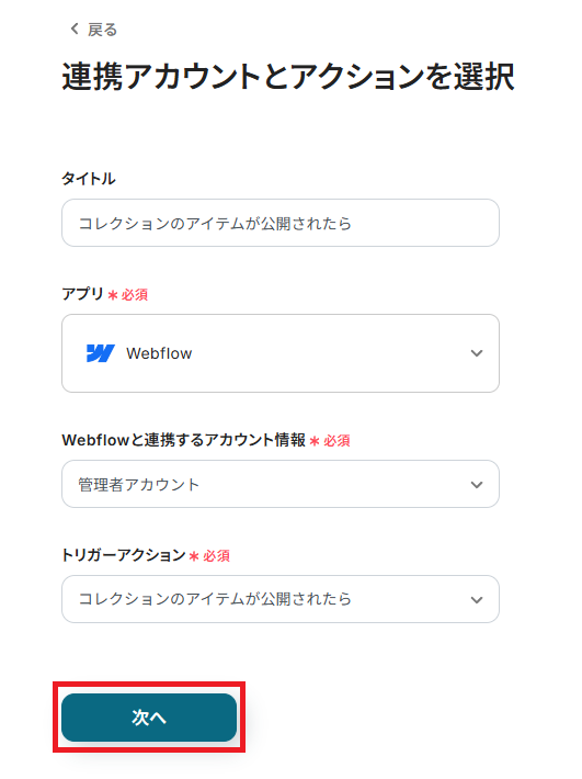 ステップ3:Webflowのトリガー設定