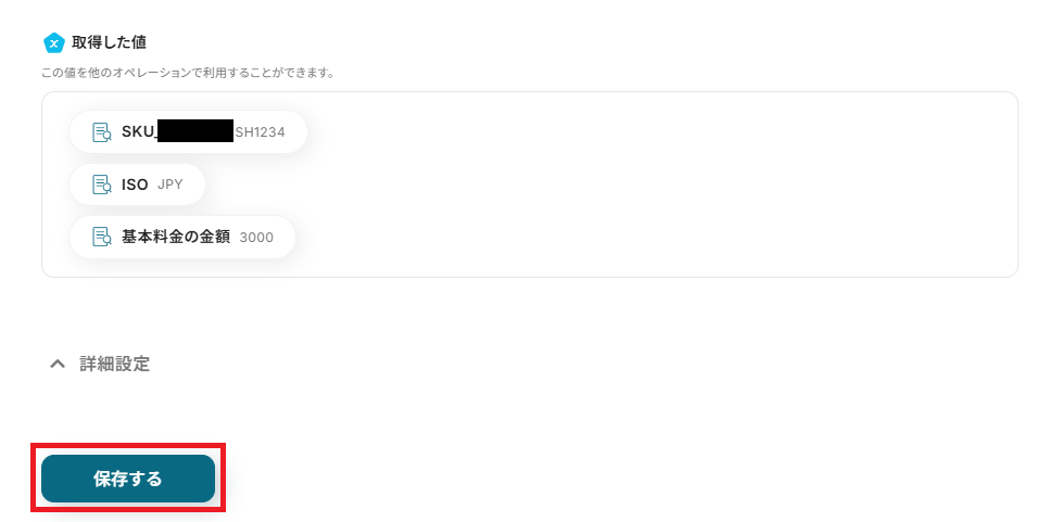 取得した値はこのあとの設定でも使用します。
