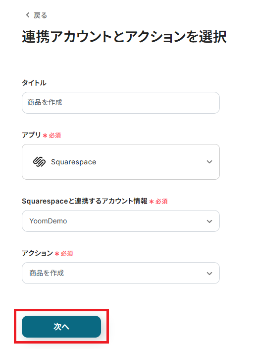 ・SquarespaceとAirtableのそれぞれとYoomを連携してください。