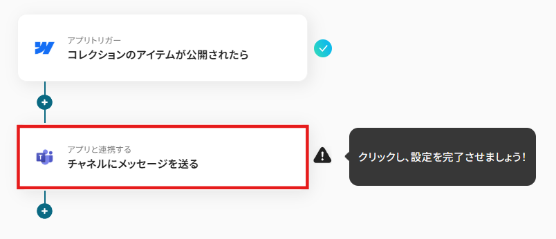 Webflowでアイテムが作成されたことをMicrosoft Teamsに通知するための設定を行います。