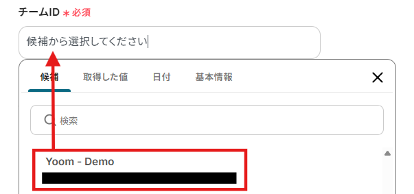 チームID、チャネルIDを以下のように表示される候補から選択しましょう。