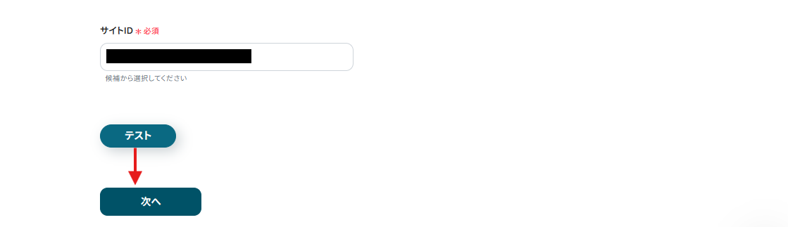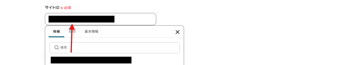 サイトIDは、枠内をクリックすると候補が表示されるので、使用したいものを選択してください。