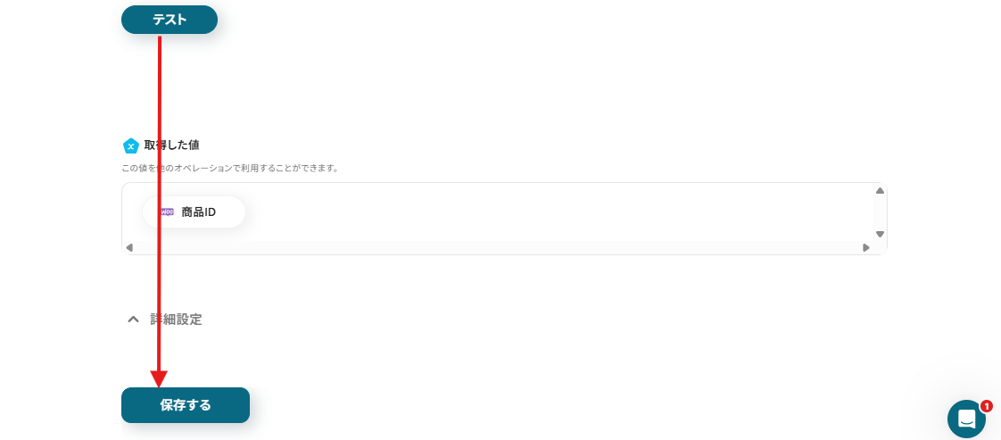 ※取得した値(アウトプット)とは、トリガーやオペレーション設定時に、「テスト」を実行して取得した値のことです。詳しくは、こちらのヘルプページをご確認ください。