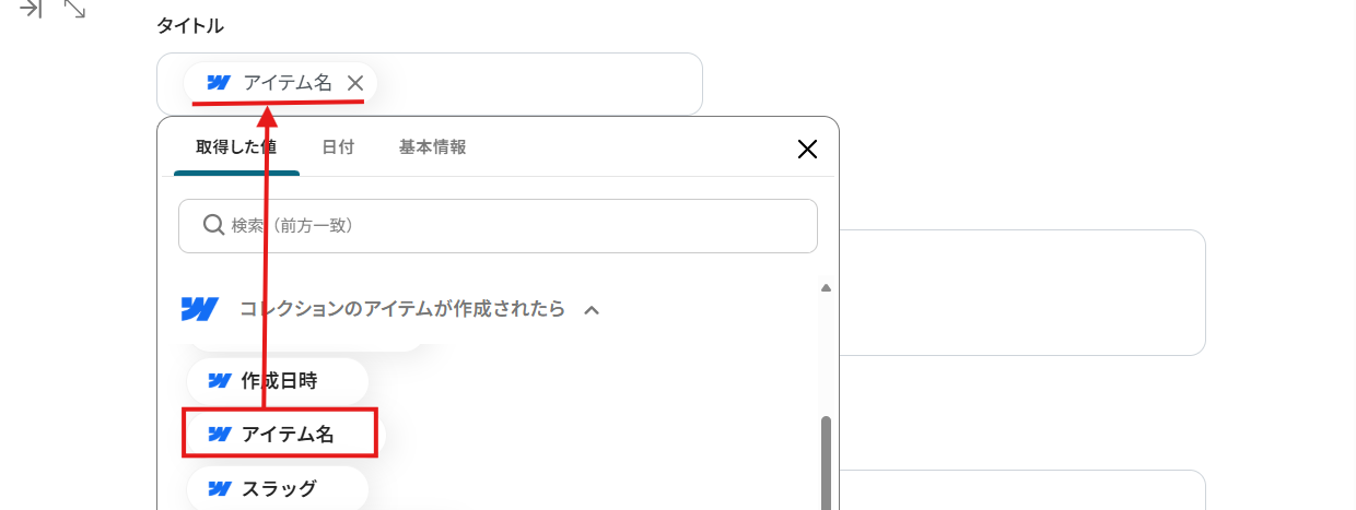 このように設定することで、Webflowに作成したアイテムのスラッグを取得し、Wordpressのスラッグに自動で反映できます。