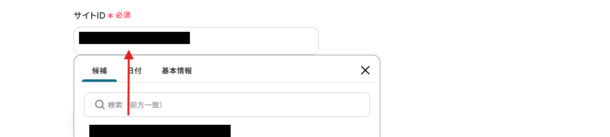 次のページでは、使用したいサイトIDを選択しWebhookURLの登録を行います。