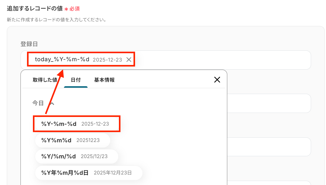 ここで取得した値は後続のオペレーション設定時に引用でき、フローを起動するたびに変動する値となります。