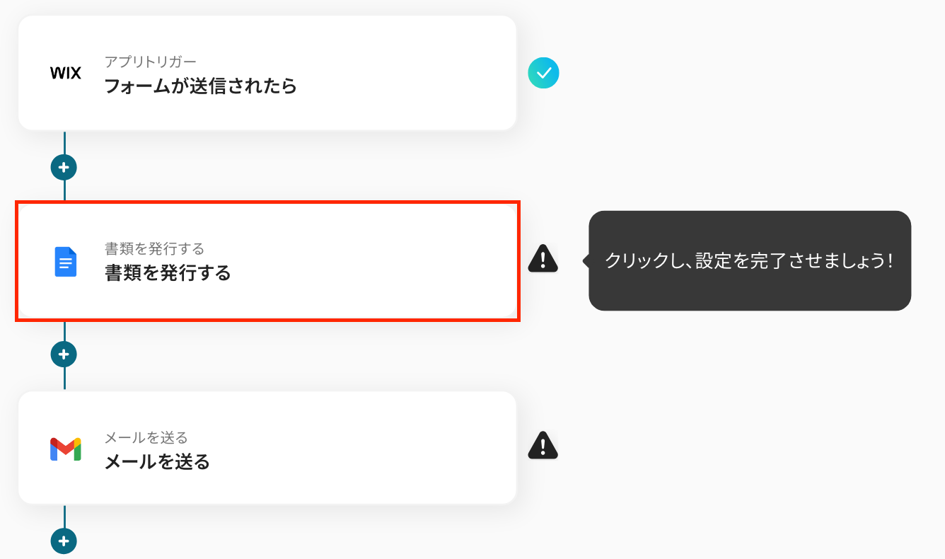 このワークフローを活用すればWixのフォームが送信されると、その内容を元にGoogleドキュメントで書類を自動で作成し担当者へ送信する一連の流れを自動化できます