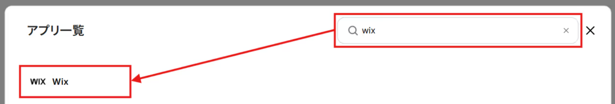 まずは、検索窓にWixと入力し、選択します。