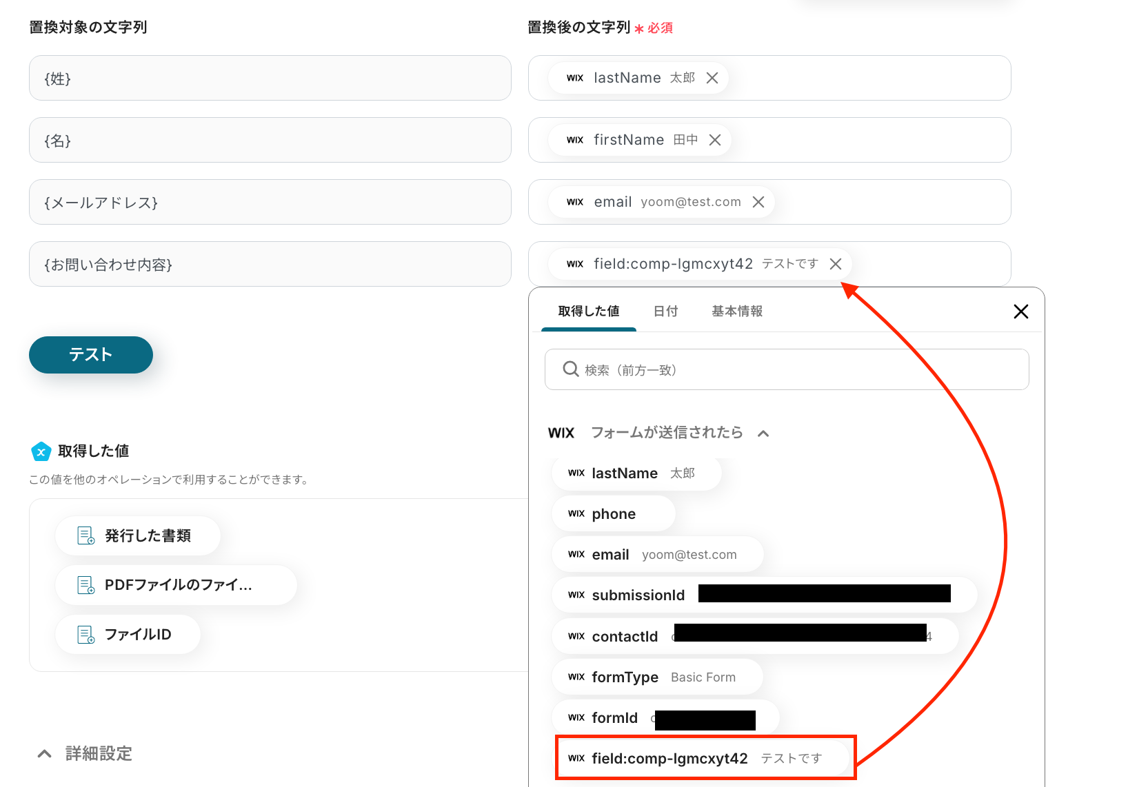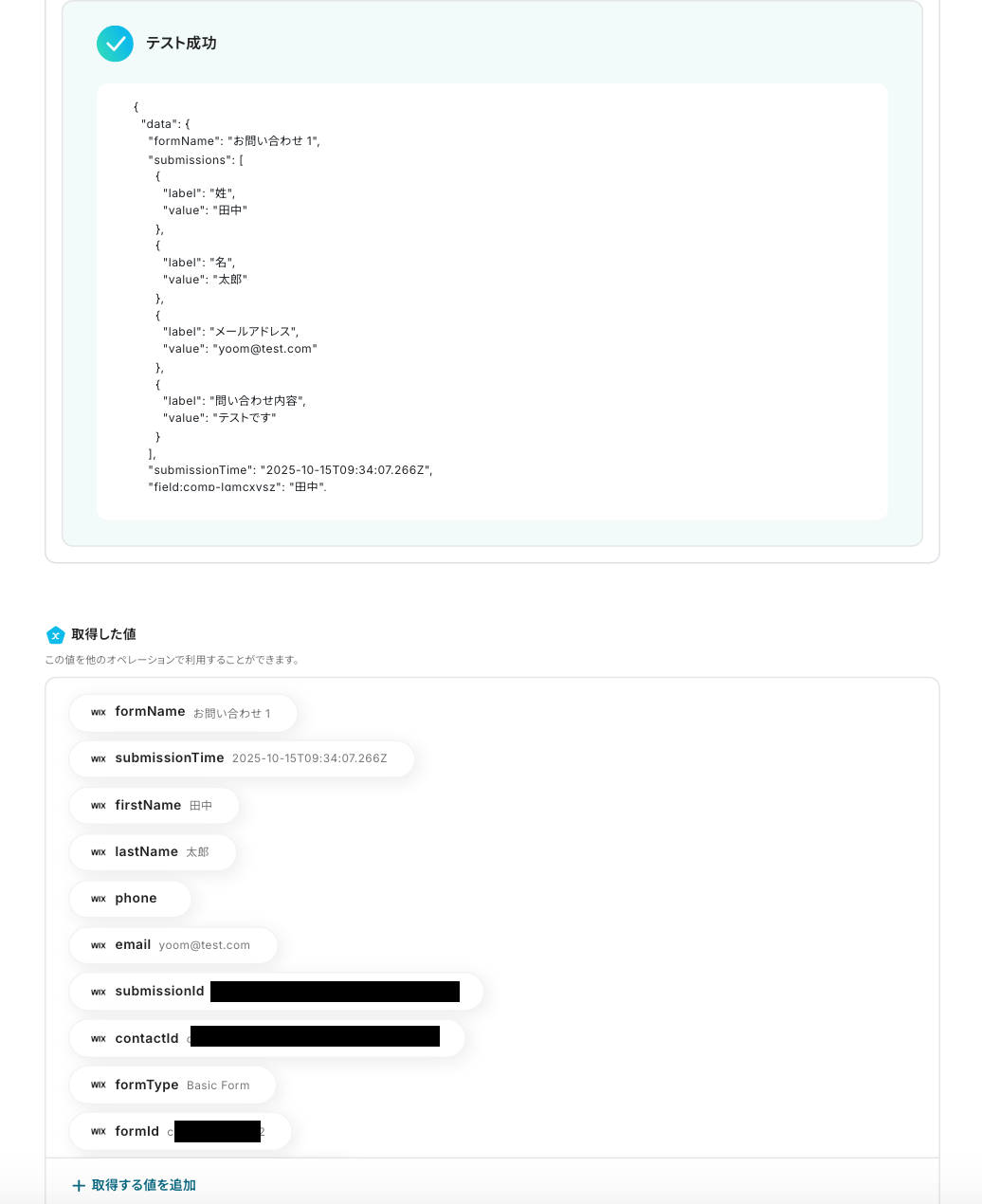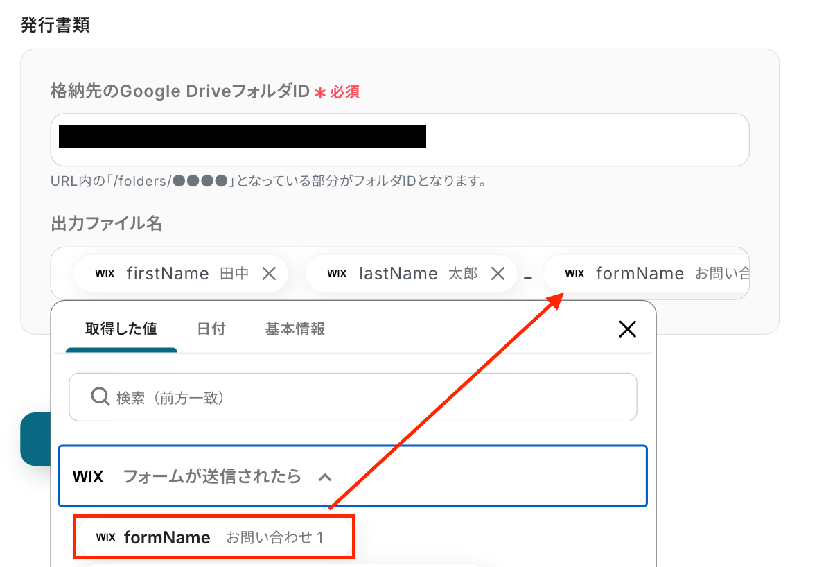 ・WixのアウトプットはJSONPathから取得可能です。取得方法は下記をご参照ください。