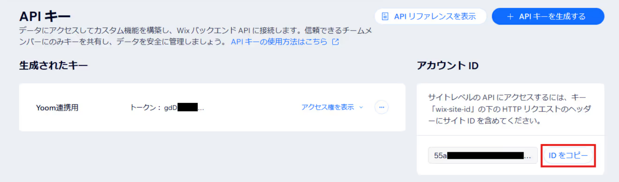 APIキーを生成すると、アカウントIDが表示されます。