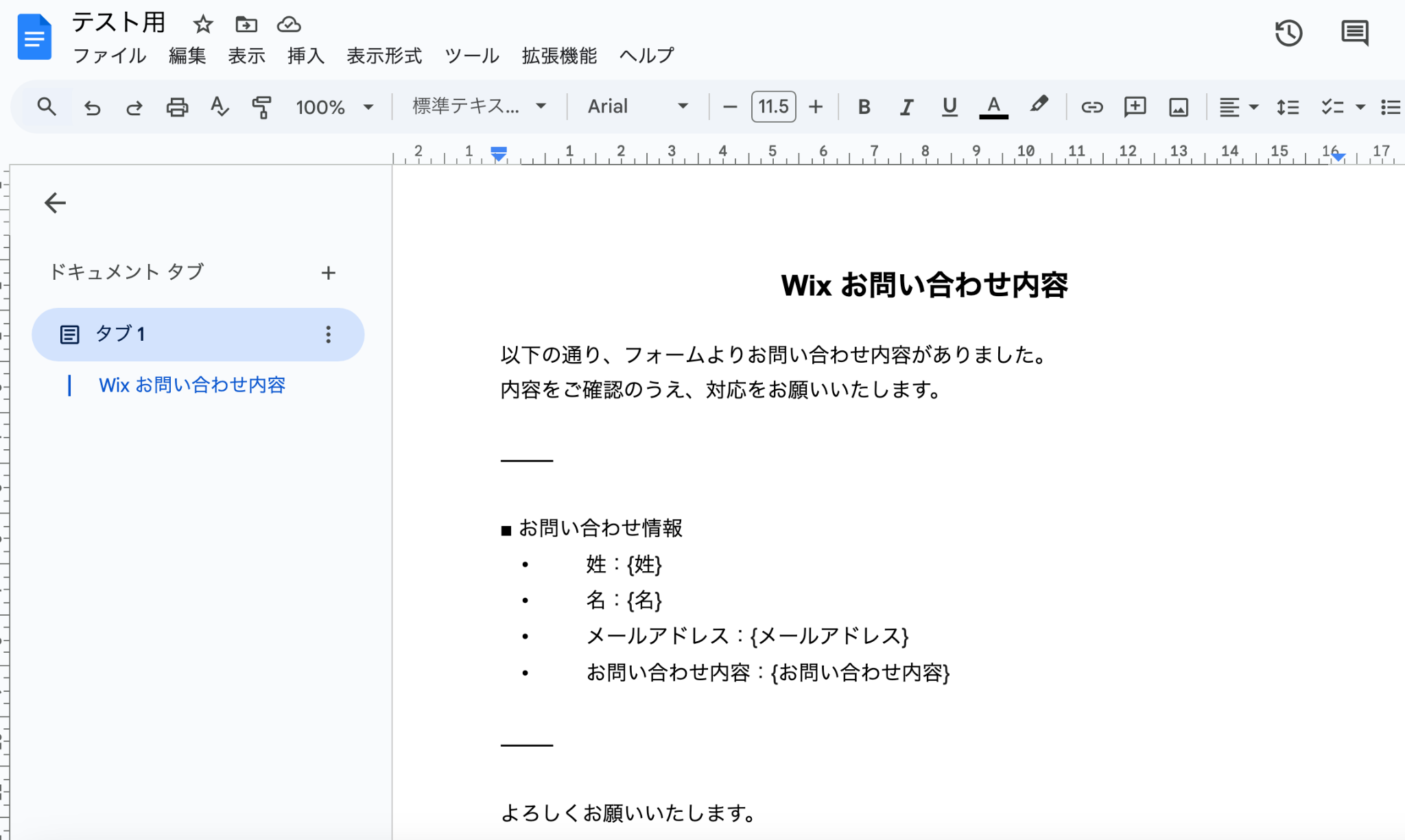 Wixで作成したWebサイトのフォームから問い合わせがあった際、手作業でGoogleドキュメントに内容を転記し書類を作成していませんか