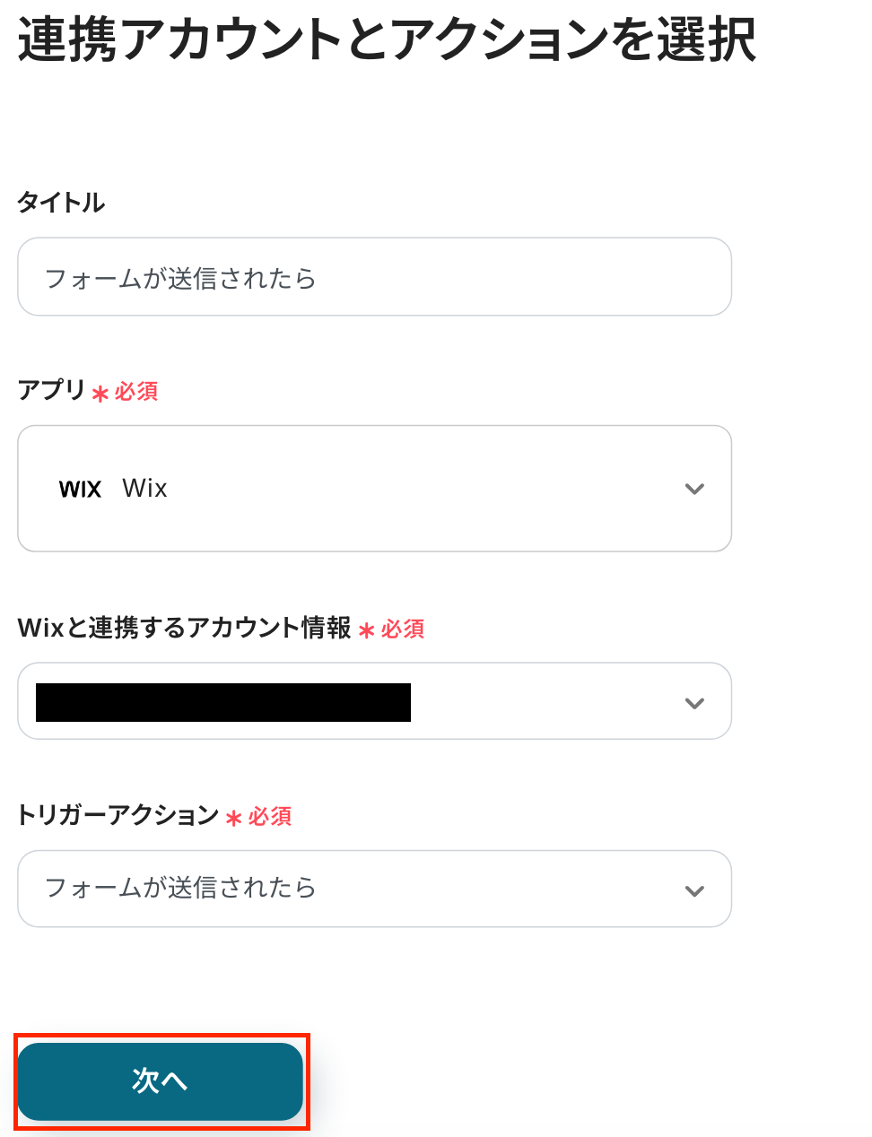 タイトルを任意で修正し、連携するアカウント情報を確認します。