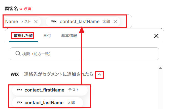 顧客名には、前のステップでWixから取得したアウトプットを入力しましょう。