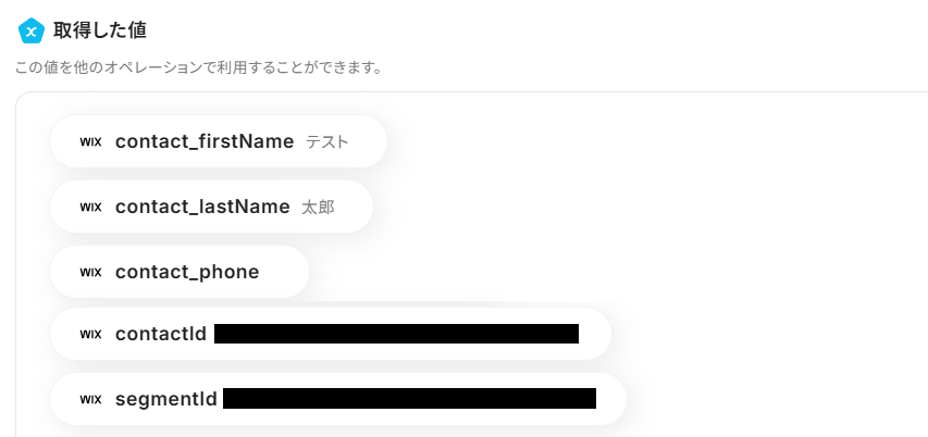 「取得した値」として、セグメントに追加された連絡先の内容が反映されていれば成功です!