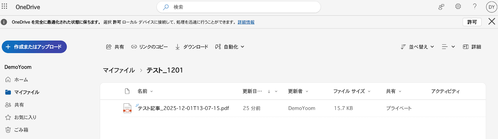 OneDriveとYoomのマイアプリ連携