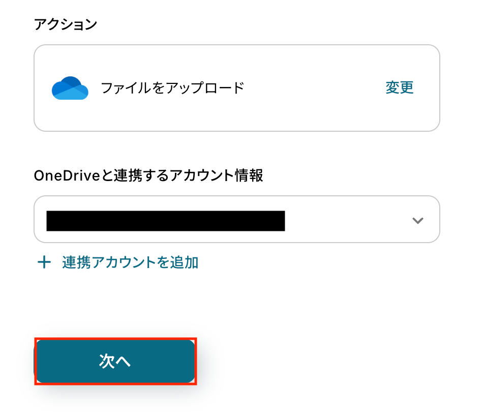 アクションはあらかじめ設定されているため、そのまま内容を確認してください。