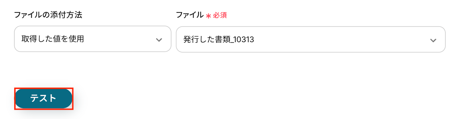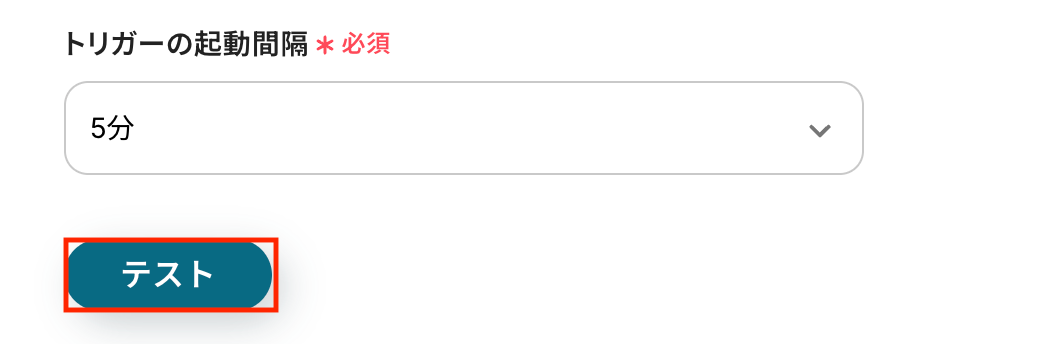 入力が完了したら、設定内容とトリガーの動作を確認するため「テスト」をクリックします。