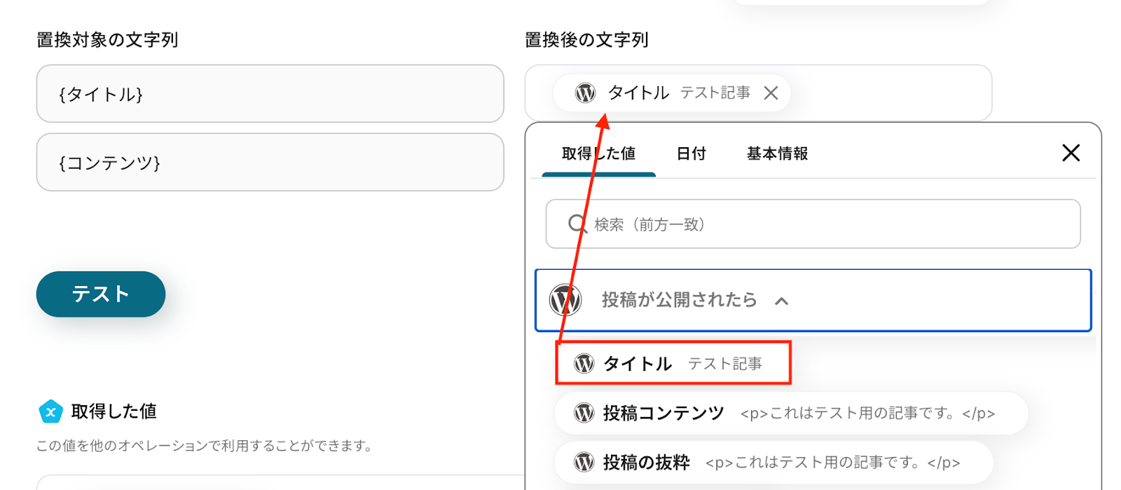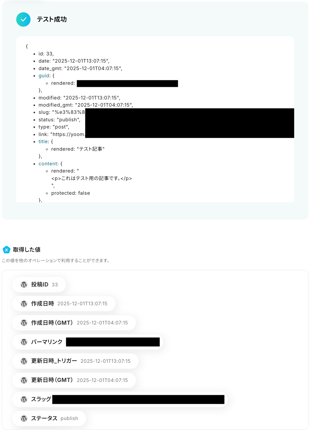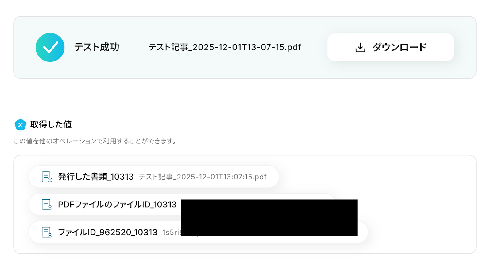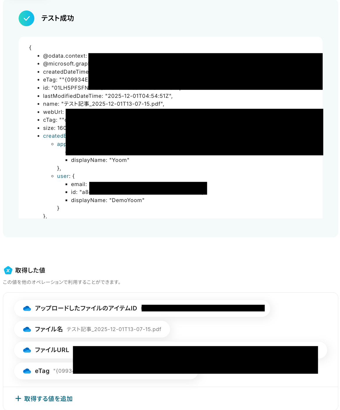 以下の取得した値は、この後のステップで利用することが可能です。