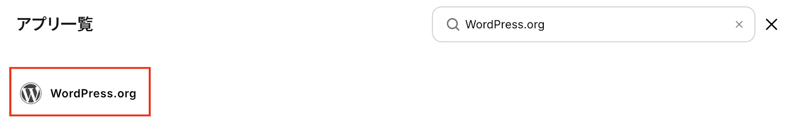 新規接続をクリックしたあと、アプリのメニュー一覧が表示されるのでWordPress.orgと検索し、対象アプリをクリックしてください。