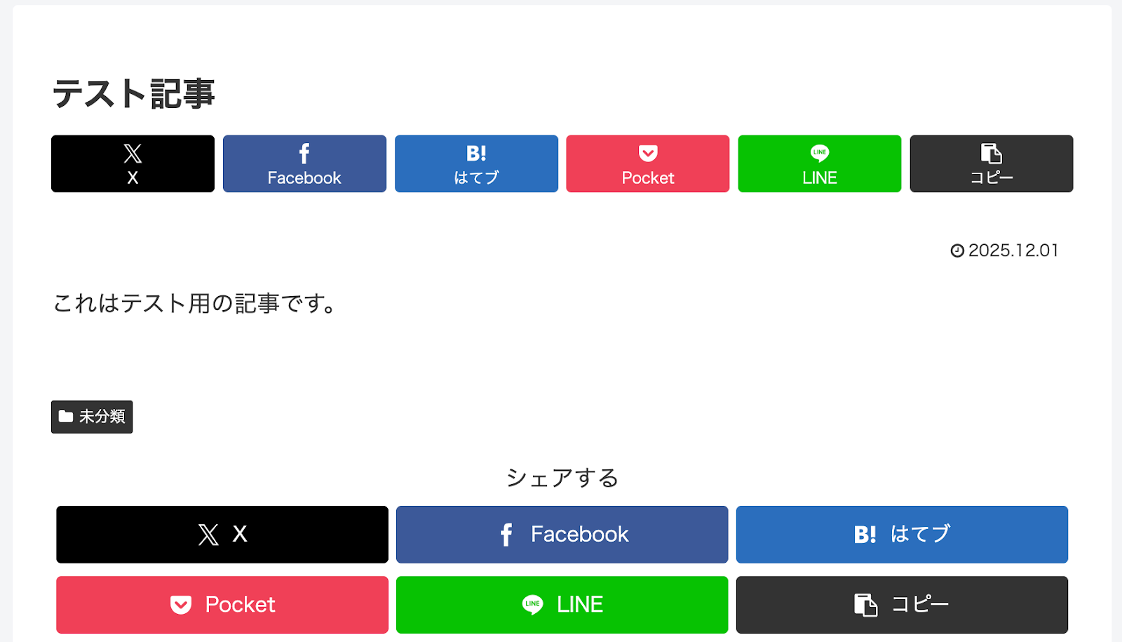 今回はテスト用に、以下の内容で投稿しました。