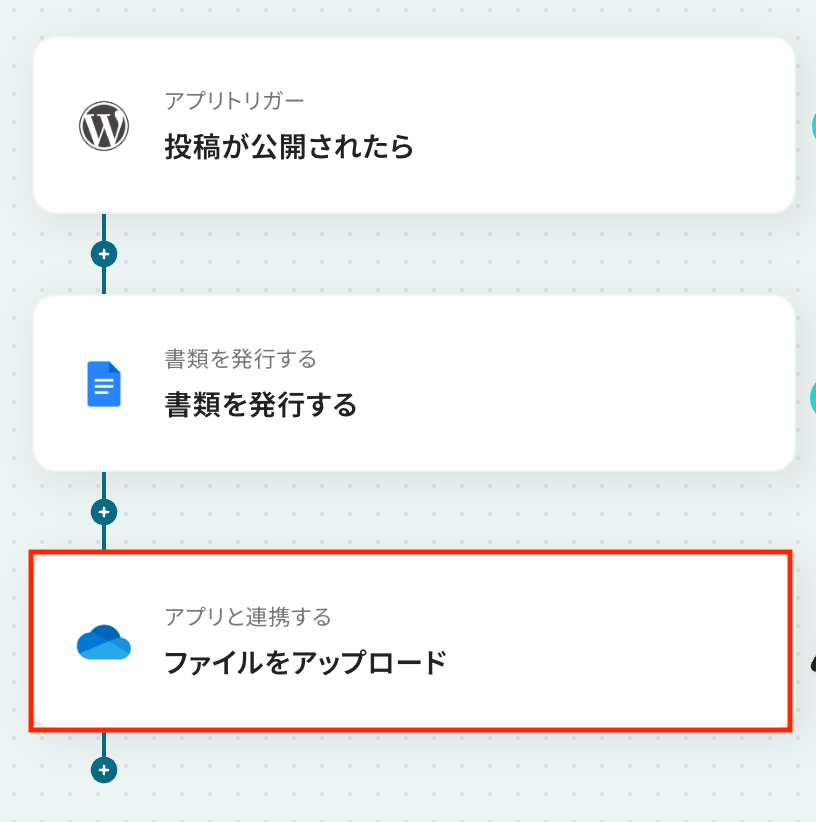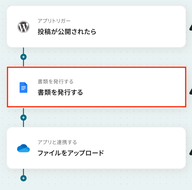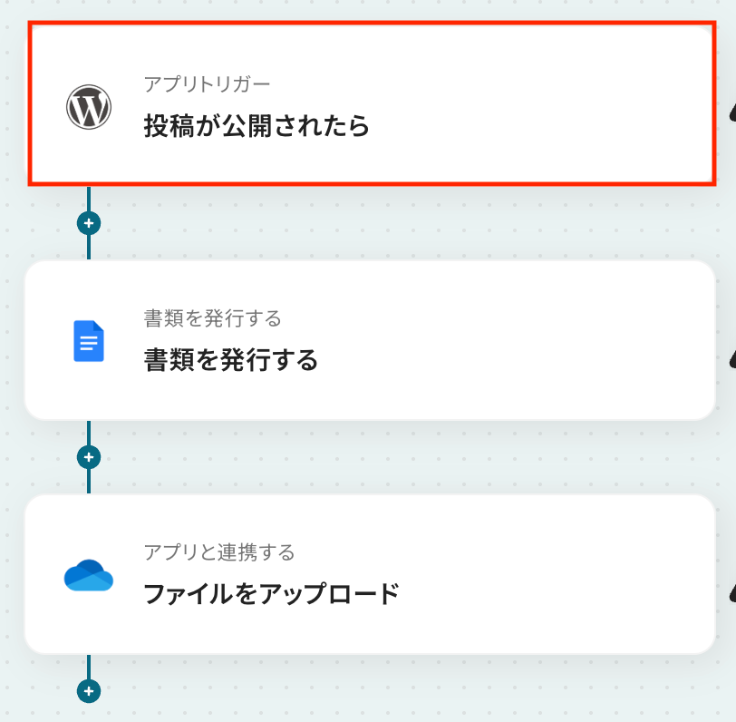 - WordPress.orgのトリガー設定およびGoogleドキュメント、OneDriveのアクション設定