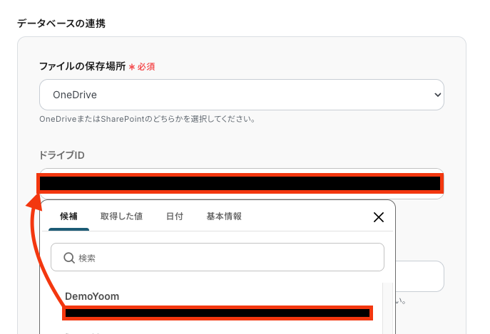 Yoomの操作画面に戻り、連携するデータベースを設定します。