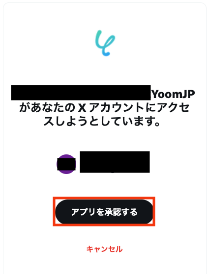 表示されているアカウントが正しいことを確認し、「アプリを承認する」をクリックしてください。