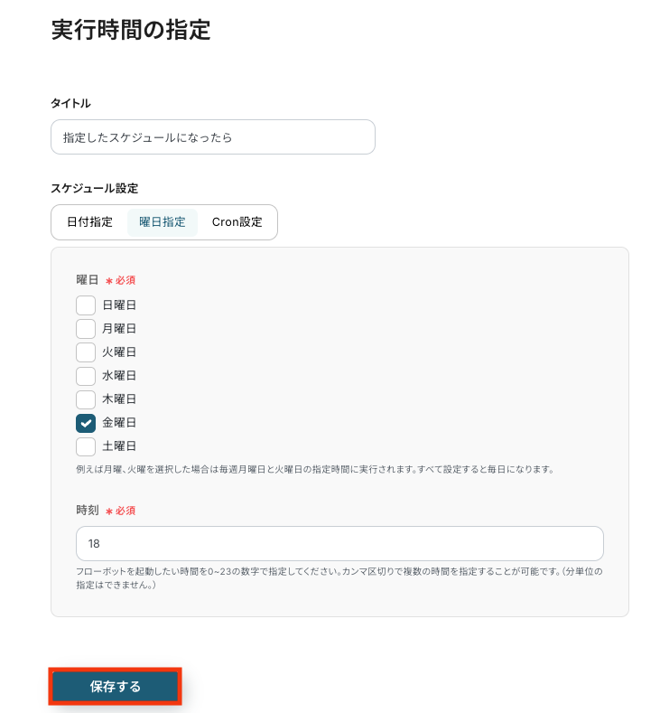 投稿したいタイミングにあわせて、任意の曜日や時刻を設定しましょう。