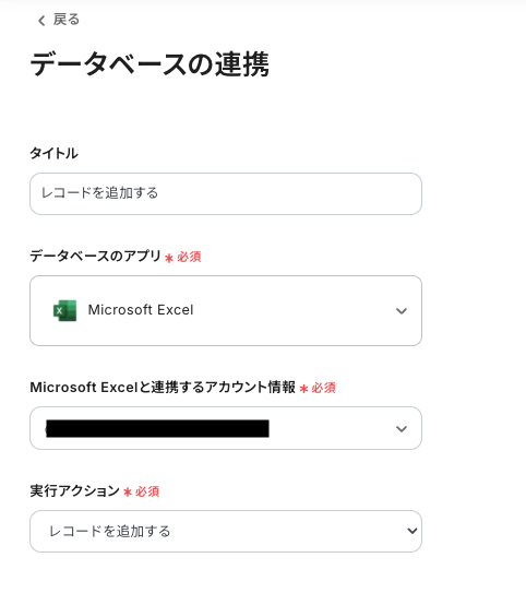 Microsoft Excelと連携するアカウント情報も確認しましょう。