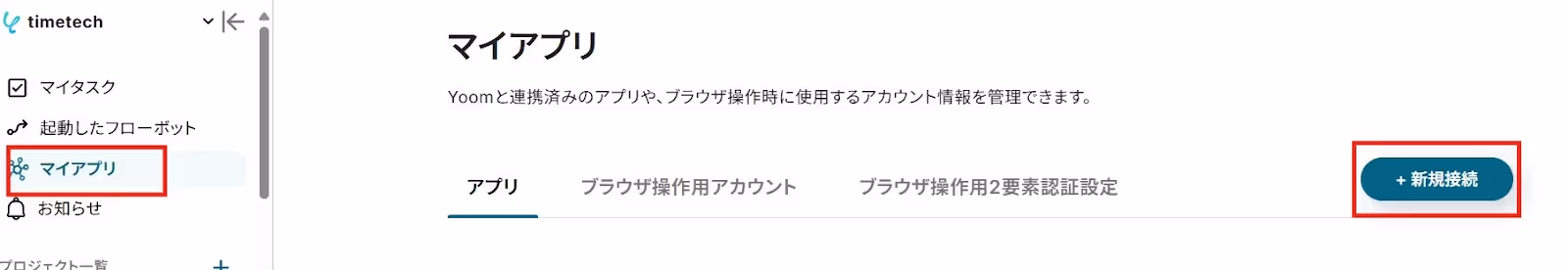 Yoomにログインし画面左側にある「マイアプリ」をクリックします。