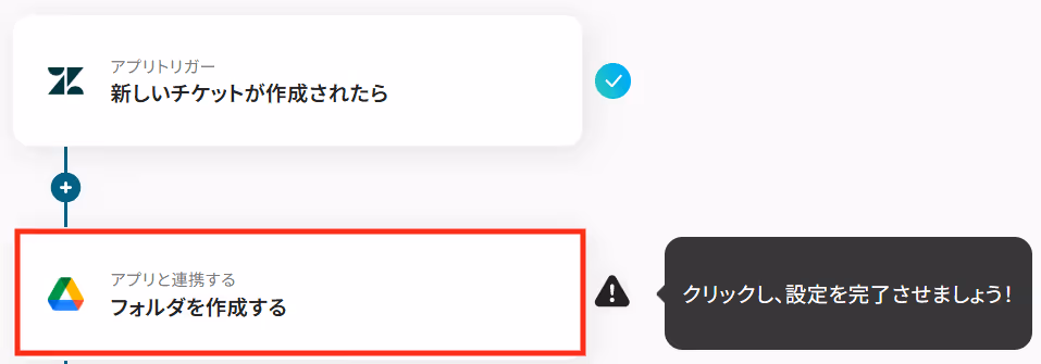 次に、Zendeskで作成したチケット情報を基にZendeskにフォルダを作成する設定を行いましょう。