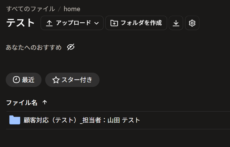 例えば、以下のように設定することで、Homeの直下に、テストフォルダが作成され、その中にテスト1フォルダも同時に作成されます。