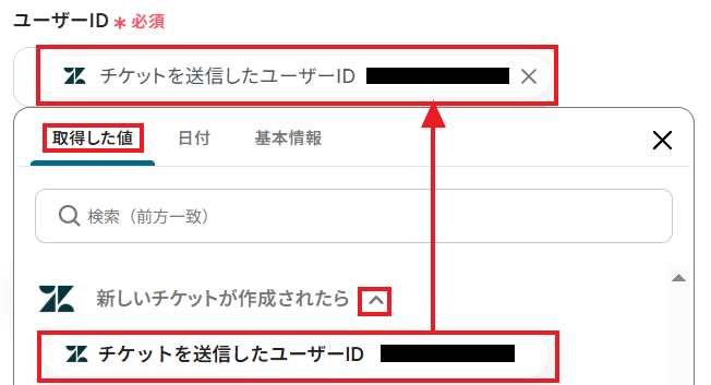 ここで取得した値を活用することにより、今後新たなチケットがZendeskで作成される度、ユーザーIDも新たなチケットに対応した値に変動します。