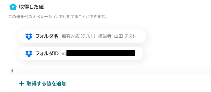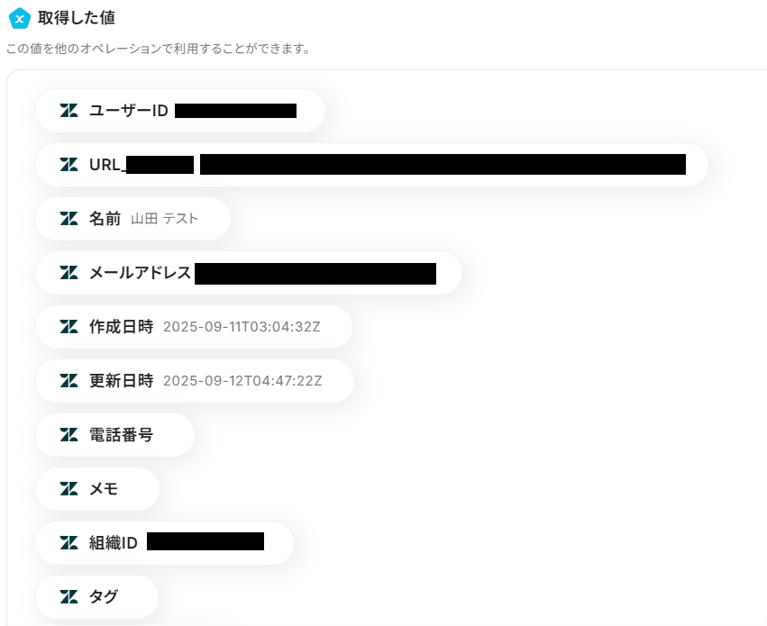 Yoomでは、テストを実行した際に取得できる情報のことを「取得した値」と定義しています。